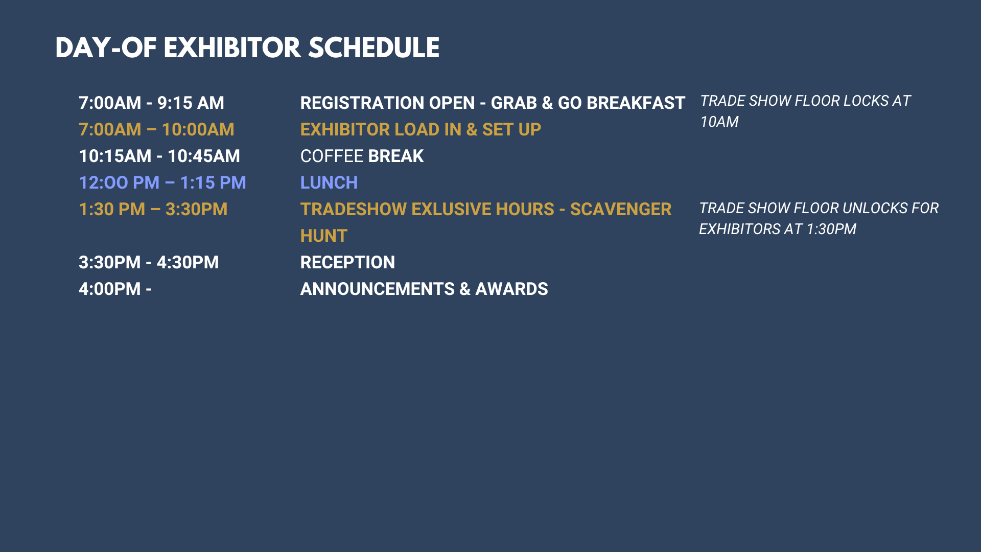 2026 Day Of Exhibitor Schedule Is Preliminary and will be updated